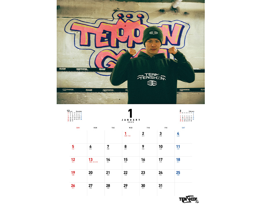 那須川天心選手のプライベート写真を掲載することで、格闘技ファン以外の方にも興味を持ってもらえるようなカレンダーを制作。