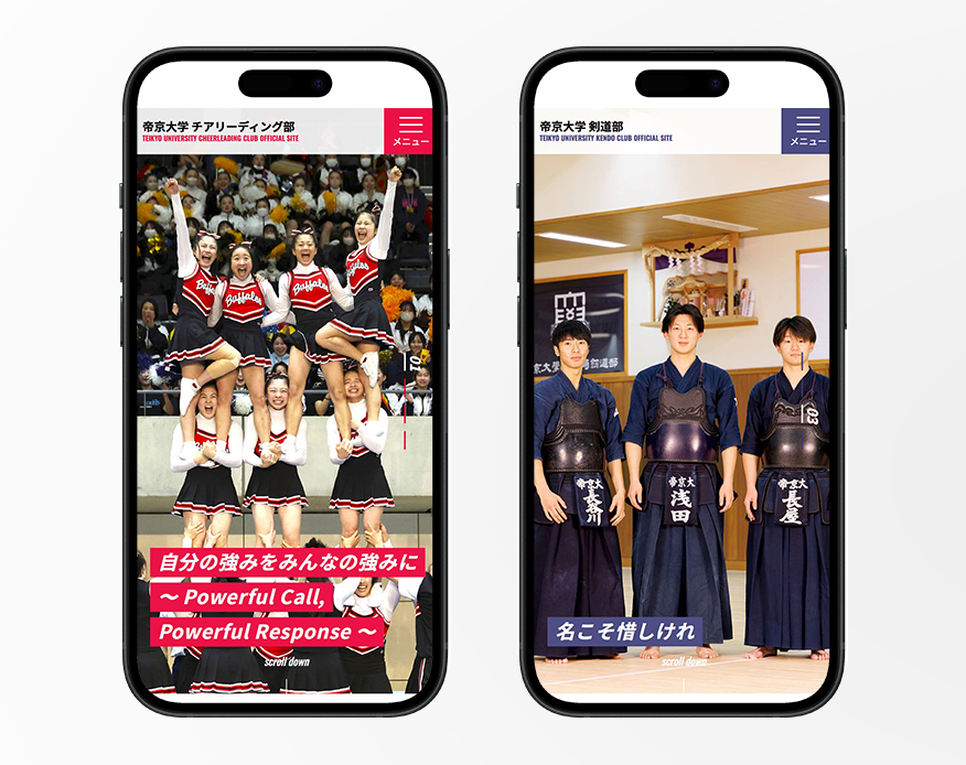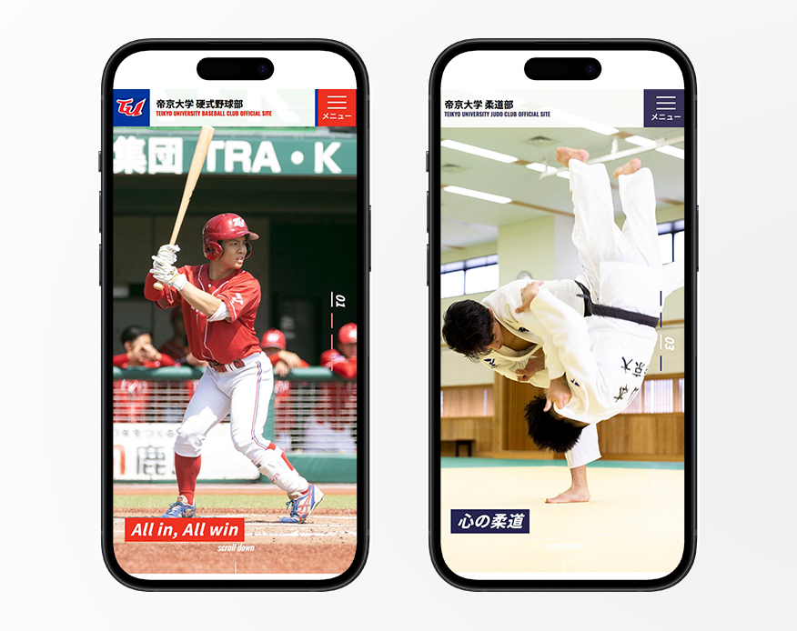 帝京大学の強化指定されている7つのスポーツ系クラブサイト制作。